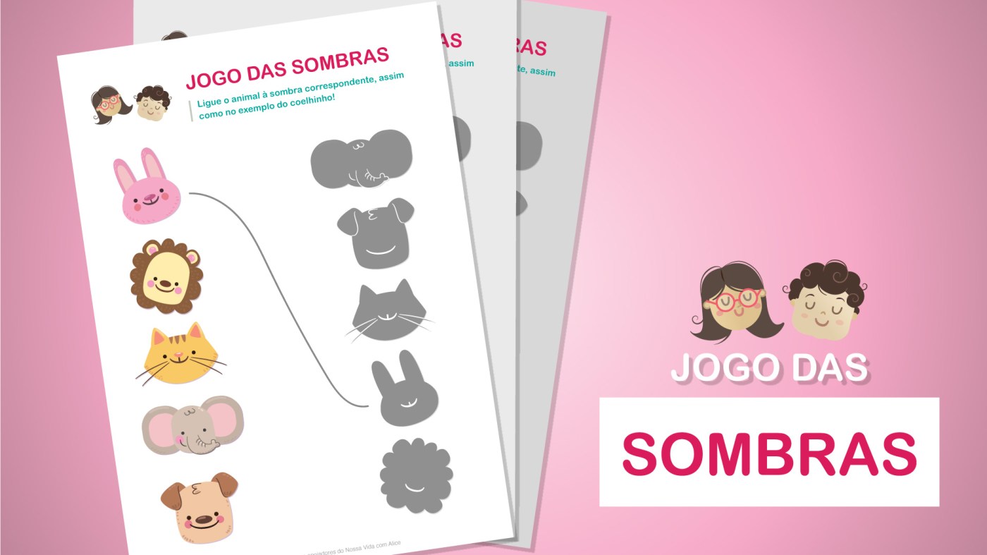 Folhinha de atividades para brincarmos com nossos pequenos. Vamos ligar os animais às sombras respectivas? Podemos ir nomeando os bichinhos, falando as cores, imitando os sons que eles fazem, trabalhamos também a autonomia do traço, a percepção visual… Cada atividade esconde dentro de si múltiplas abordagens interessantes!