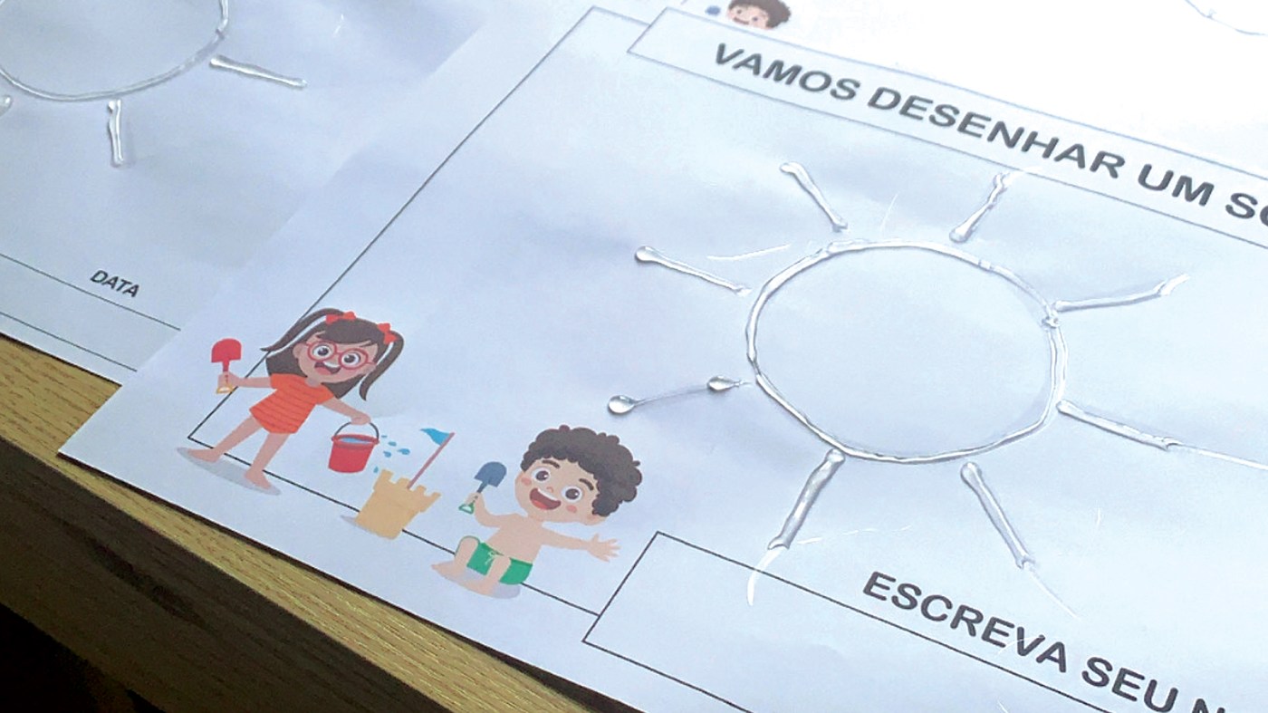 Fiz uma atividade para estimular o desenho figurativo da minha pequena. A ideia é passar uma cola quente em cima dos traços, para engajar a criança a fazer o traço. Vejam nos meus stories mais detalhes 🙂