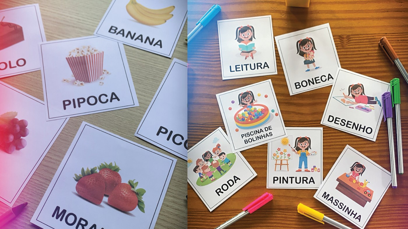 Pode ser usado como apoio à comunicação, como pareamento, como jogo da memória…