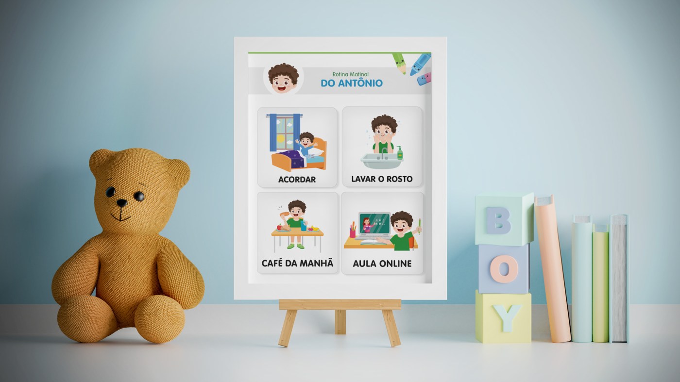 Muitas famílias pediram, então decidi fazer a versão masculina de imagens para rotina. O arquivo que disponibilizo hoje para impressão é uma apostila de vinte imagens para serem usadas na confecção de um quadro de rotina ou materiais similares.