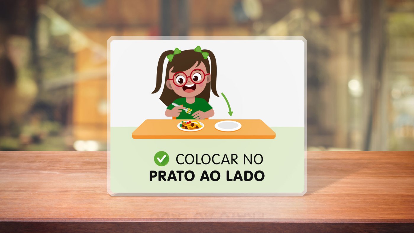 Disponibilizo para impressão hoje, um cartaz para orientarmos amigavelmente nossos pequenos a não jogarem a comida que não querem no chão. Aqui em casa, como minha pequena não gosta de colocá-las no canto do prato, conforme eu a orientava, pensei, em conjunto de suas terapeutas, em ofertar um prato extra, onde ela poderia colocar os alimentos que não deseja comer. Assim, ensinaremos aos poucos que os alimentos não desejados não devem ser jogados no chão. Em paralelo, continuarei ensinando que colocá-los no canto do prato também é uma alternativa possível.