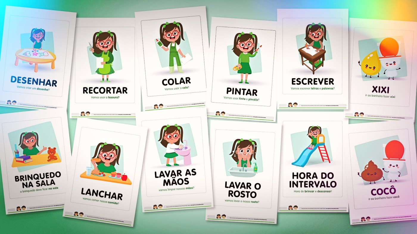 Dei uma atualizada no arquivo de rotina escolar da Alice, que envio para a escola, e achei que vocês poderiam ter interesse no arquivo também! Você pode imprimir uma por página, duas por página, quatro por página… Pode também plastificar, para aumentar a durabilidade. Espero que seja útil!