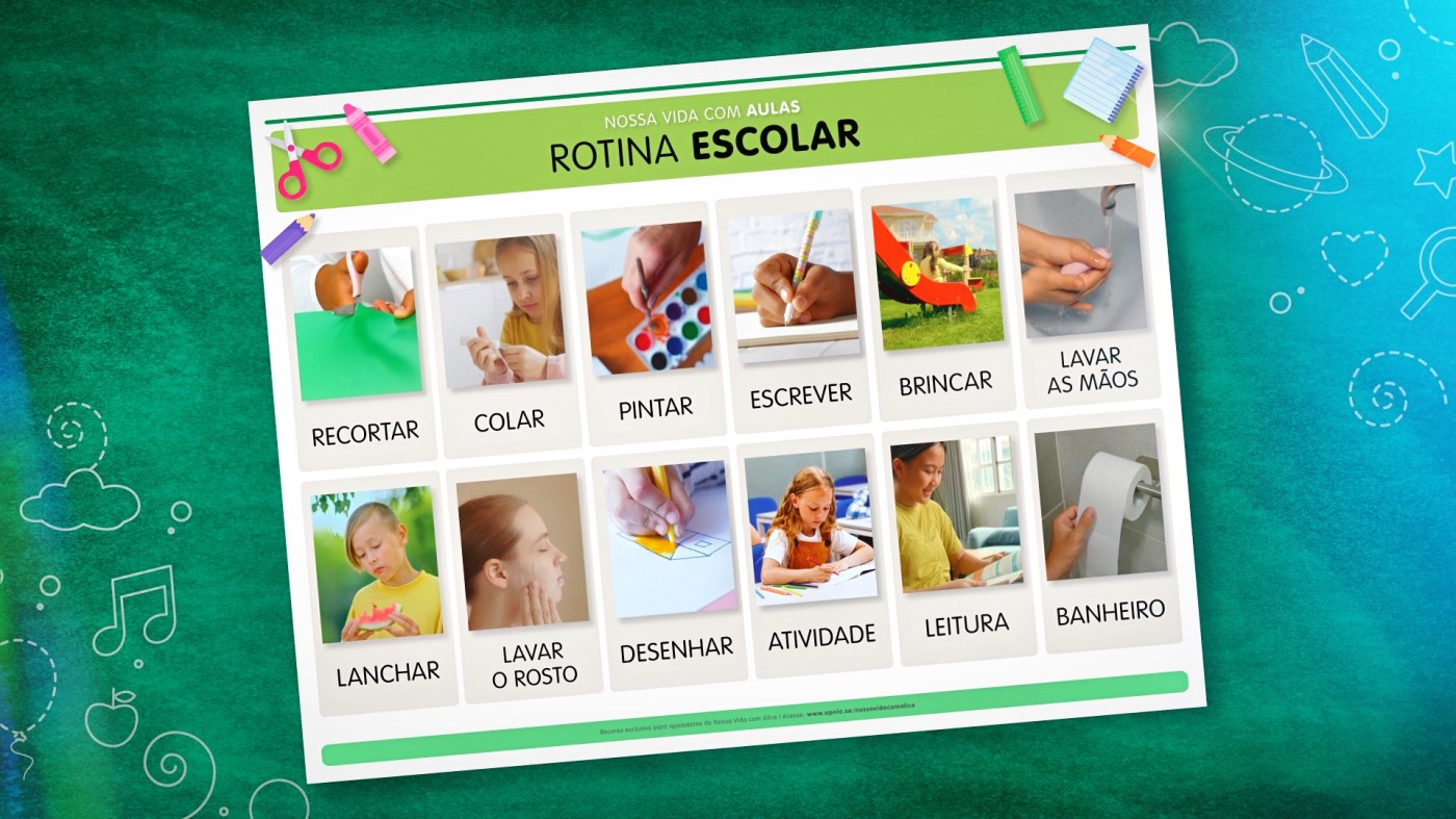 Trago neste documento o arquivo atualizado da rotina escolar, na versão fotos. Algumas famílias relatam que seus filhos mais velhos já não querem mais materiais de apoio com ilustrações. Pensando nisso, elaborei uma versão usando imagens reais. Mas lembro, porém, que também estão disponíveis as versões em ilustrações.