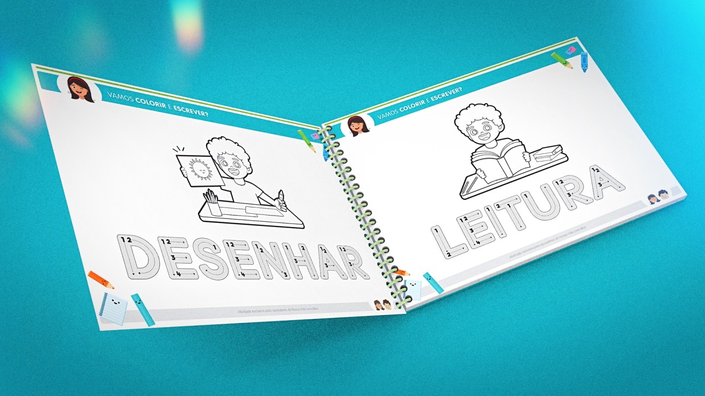 Na apostila, o foco principal é o treino de escrita, com espaço para colorir, proporcionando uma experiência lúdica. Lembre-se de que há outros materiais meus buscando autonomia escolar e uma vivência educacional mais feliz.
