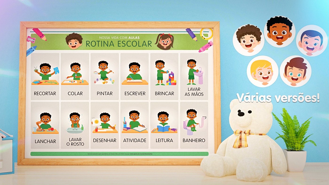 Estou compartilhando o arquivo atualizado da rotina escolar na versão masculina, visando auxiliar no retorno às aulas. Reuni todas as ilustrações em uma única prancha, considerando a familiaridade da minha filha com o material. Mas lembro que versões individuais por folha também estão disponíveis, junto a outros recursos para autonomia escolar, incluindo a versão feminina.